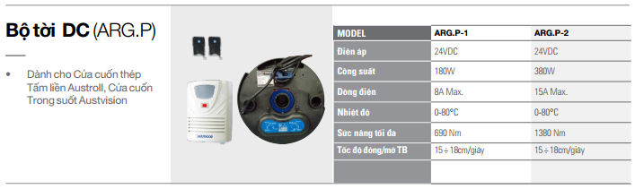 – Motor Austdoor đôi – ARG.P2: thích hợp sử dụng cho cửa cuốn austdoor có diện tích >12 m2