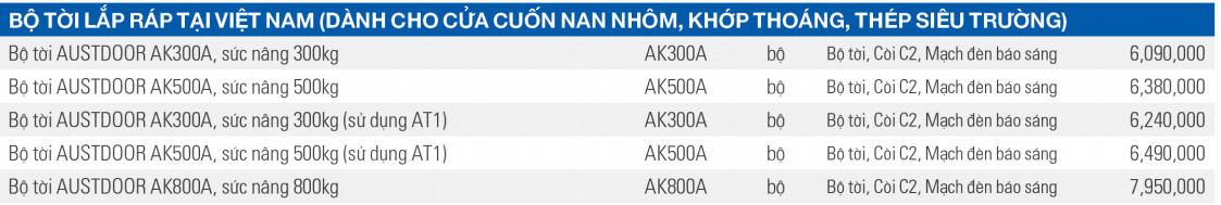 Giá cửa các loại Motor cửa cuốn Austdoor như thế nào?